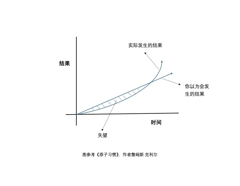 困难时期 – 有时你可能会感到沮丧难过,可能是因为多次参加同一次考试,也可能是因为工作的压力或是来自考试和工作的双重压力。不要放弃。正如在本章节开头的漫画图片所显示的那样,你过去的所有努力都是值得的,转折点和成功可能就在不远的拐角处。我想与你分享我从《原子习惯》(James Clear著)这本书中学习到的一张图。在一开始做一件事情的时候,我们预期的结果通常是比真实的结果要高的,这会导致失望,如图中阴影部分的区域。然而,坚持下去到了一个点后,实际的结果就会成指数倍的高于我们原来的预期。这时,过去努力的全部价值就会显现出来。因此,在遇到困难时,坚持一下。